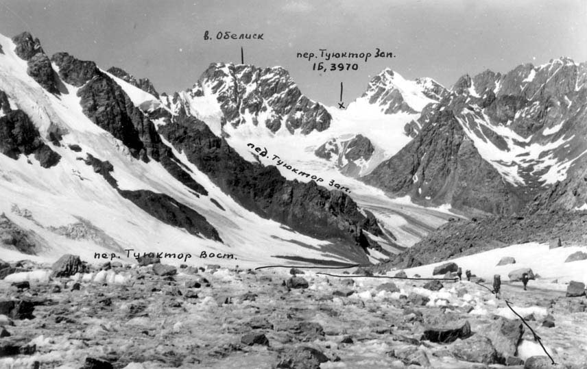 Описание прохождения перевала дается от места ночевки у озера возле моренного гребешка, разделяющего ледники Западный и Восточный Туюктор. В этом месте группа останавливалась на дневку /вторая половина предыдущего дня и первая половина следующего дня/.