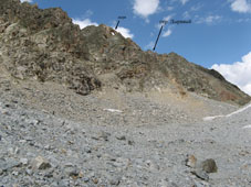 | Спуск по осыпи и снежнику в верхний цирк | 1 час 20 минут | -150 |