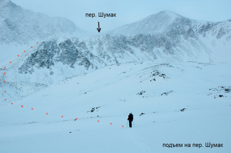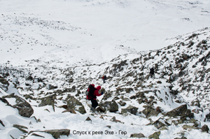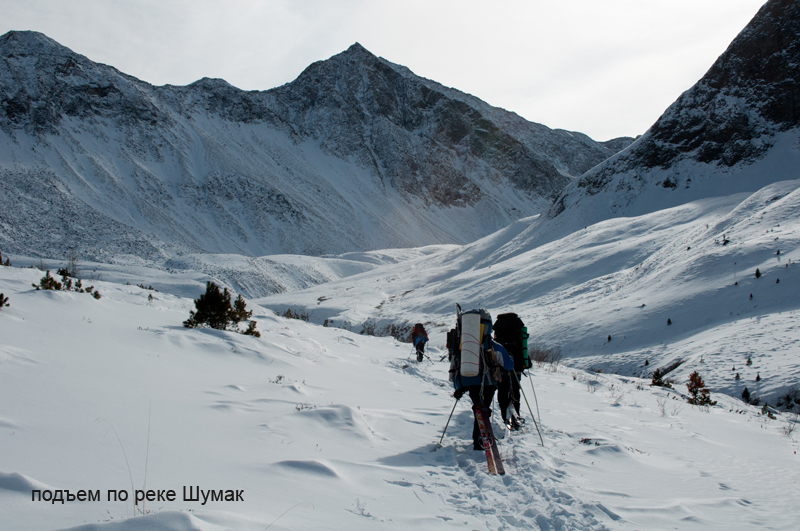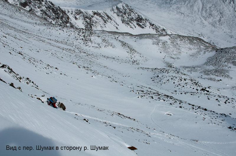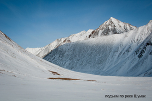 пер. Шумак (1А, 2760) – р. Эхе-Гер- м/н не доходя водопада. (Перевал Шумак по факту 1Б зимой. Категория от количества и состояния снега)