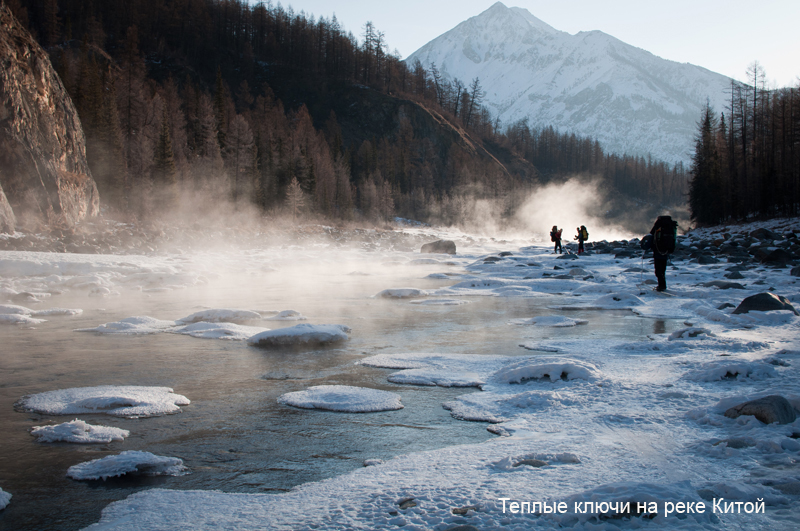| 29.02.2012 | р. Китой - слияние Ара-Ошей с Китоем | -160 | 11,5 | 13,8 | Китой очень разнообразен, наледи, выходы теплых источников, Каньон Лизкины щеки очень красивый | слияние Китоя и Ара-Ошей - слияние с Яманголом - Ямангол до отм. В 1600м |