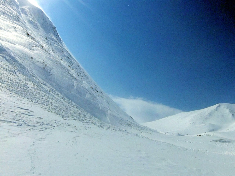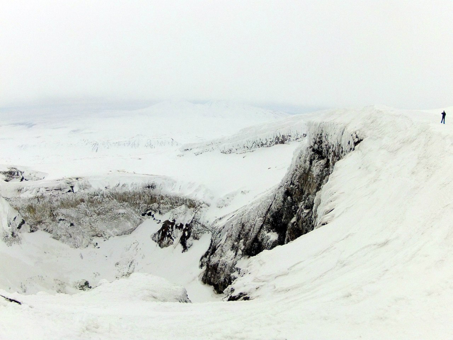 Планировалась лыжная тройка, 15 ходовых дней. Впечатления очень сильные, главное впечатление – это погода. 16 ходовых дней – из них половина – отсидки(сильный ветер сбивающий с ног, мокрая пурга, просто пурга, пурга низовая). Такого жесткого похода не было ни у кого из присутствующих, довольно опытных людей. В результате прошли 2 перевала 1Б в режиме первопрохода(связка), 2 перевала н/к, 1 восхождение на вулкан Горелый. Рельеф очень интересный, иногда в маленькие ручьи невозможно просто так спуститься – крутые надувы. Температура всегда была около нуля или чуть ниже.