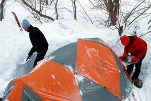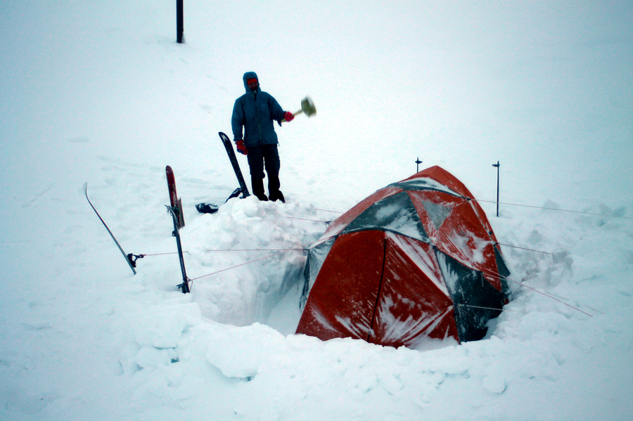 Откапываем палатку. За ночь нападало более полуметра снега.
