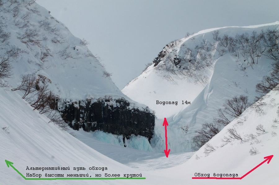 15 | 18 | В апреле тут задутый снег, фирн, наст. В марте и ранее может быть лавиноопасно, видим лавинные выносы. | м/н - подход под вулкан Горелый |