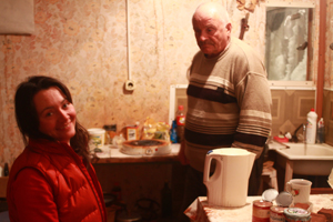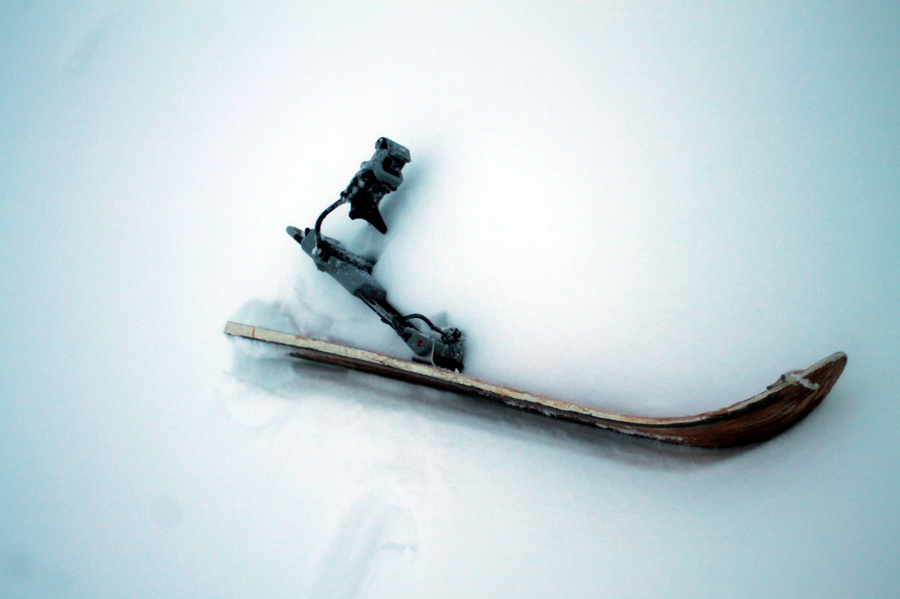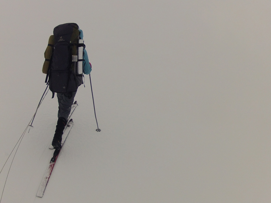 С утра видимость плохая, выходим на дорогу, погода ухудшается, порывы ветра нарастают. К обеду подходим под перевал, остается набрать каких то 200 метров и по дороге. Но эту дорогу можно было только нащупать и мы решаем чуть приспустится и встать возле дороги в надуве. По дороге Ира ломает бескид пополам. Переставляем крепление на половину лыжи.Ночью было забавно, почему то начали ехать одна машина за одной. Может быт ночью в пургу лучше видно? :)
