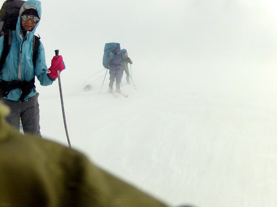 Отсидка. Мы увидели разные состояния пурги: сильный ветер, сбивающий с ног, ветер со снегом, горизонтальный дождь (пожалуй, это самое противное. При таком дожде двигаться невозможно, вся одежд мокрая через минуту)