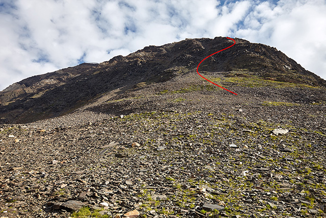 При прохождении восточного перевального взлета на спуск можно использовать как наш путь подъема, так и спускаться с низшей точки седловины левее жандарма по линии падения воды.